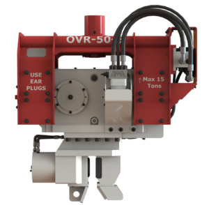 The OVR series vibratory pile driving machines are designed to operate using the hydraulic system of the excavator they are mounted on. The vibratory hammer can be installed quickly and easily without requiring any modifications to the excavator and is directly controlled by the excavator operator.
