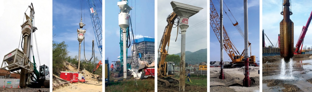 The vibroflotation machine (stone column equipment) creates a cavity when penetrated into loose soil. Then, gravel particles of a specified size are fed into the cavity using either a top-feed or bottom-feed method. Subsequently, the gravel is compacted through vibration to form a stone column. This process enhances the load-bearing capacity of soft and loose soils and reduces the risk of liquefaction.